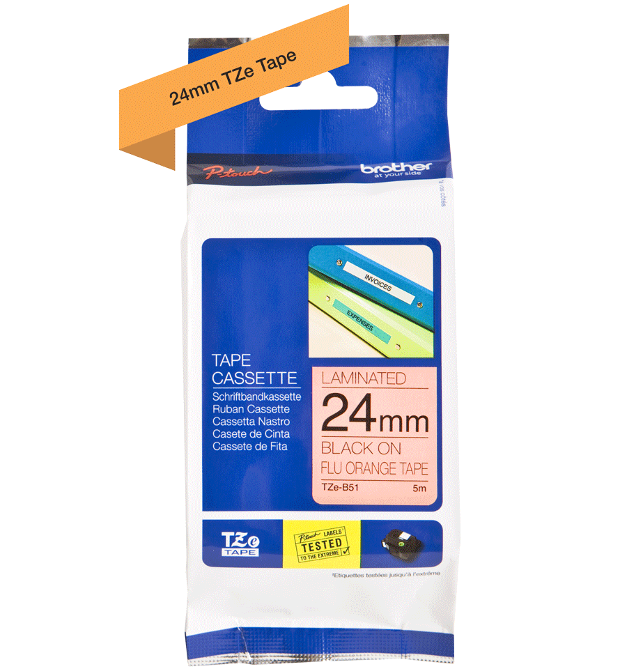Brother P-TOUCH TZE-B51 24mm 8mt Sarı Üzerine Siyah Laminasyonlu Etiket
